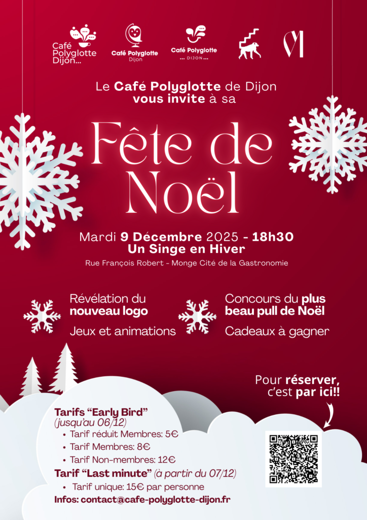 Le résultat du vote sera dévoilé lors de la soirée de Noël du Café Polyglotte qui aura lieu le Mardi 9 Décembre 2025. Plus d’infos à venir prochainement, mais note déjà cette soirée sur ton agenda!