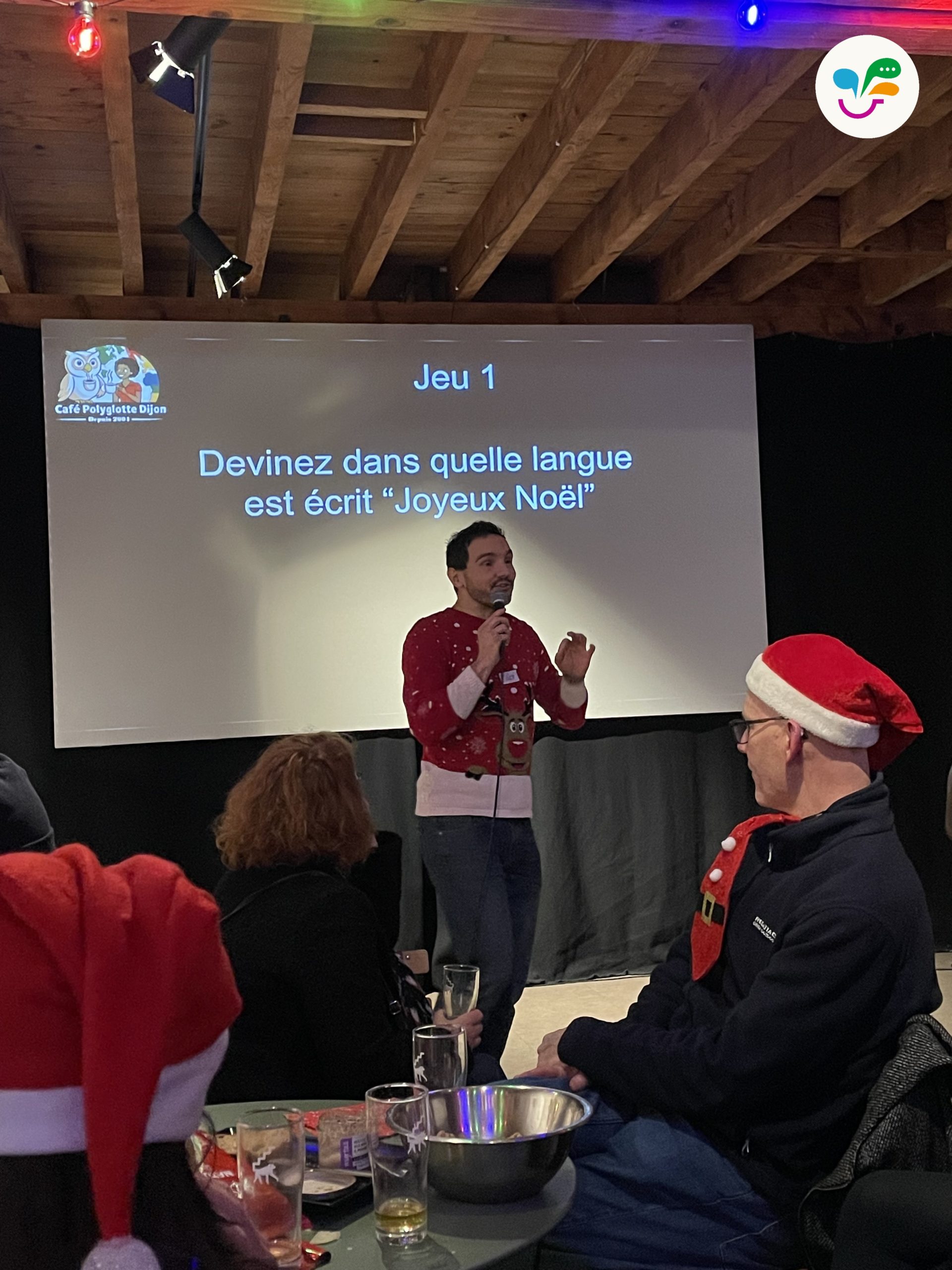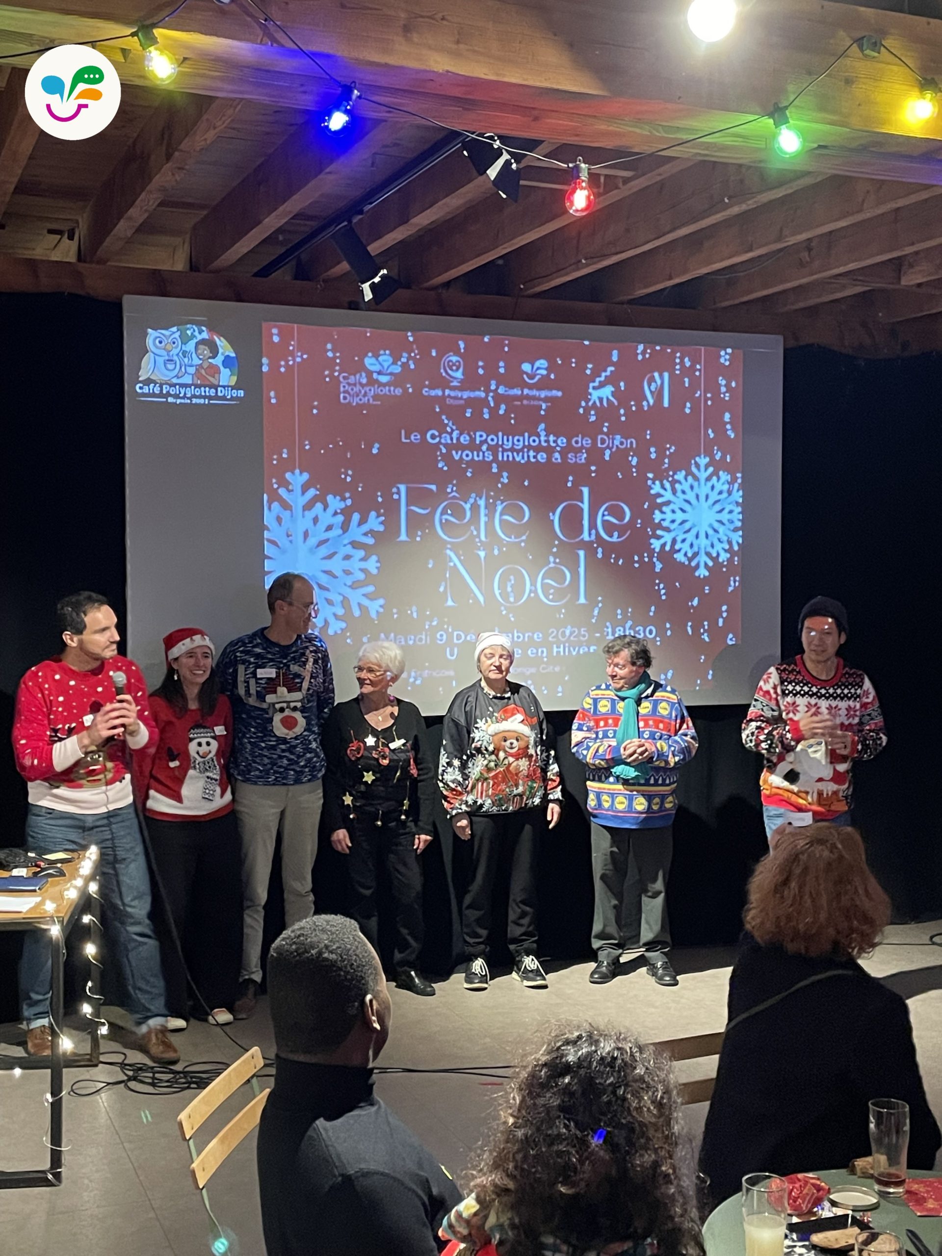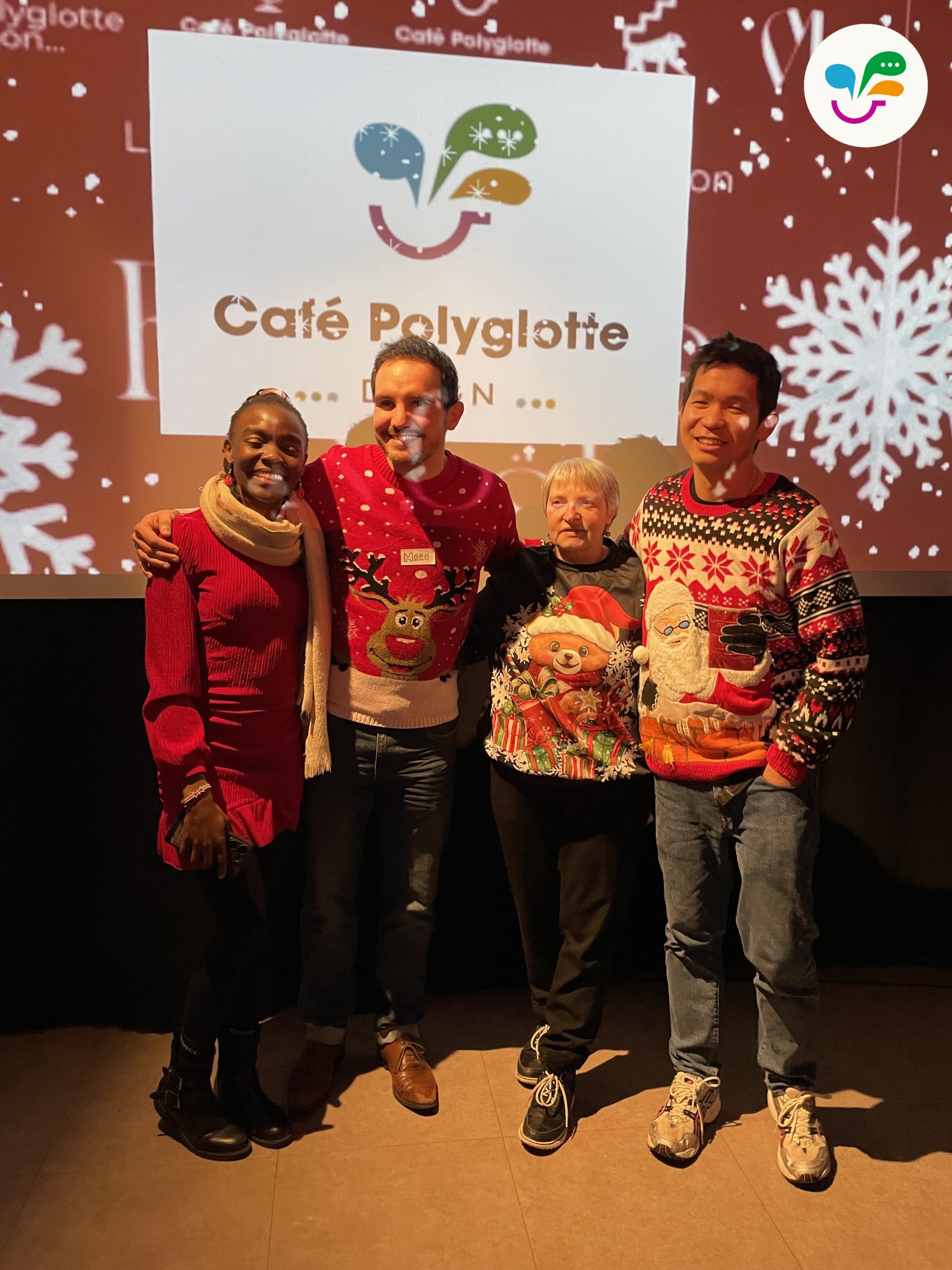 Le Café Polyglotte a fêté Noël en grandes pompes au Singe en Hiver! Une soirée bien entourée, avec 75 participants motivés, souriants, dynamiques. Une soirée qui promet de rester dans les annales du Café, un vrai moment de communion et de rencontre entre nos nombreux membres. Avec le clou de la soirée: la révélation du nouveau logo du Café Polyglotte!